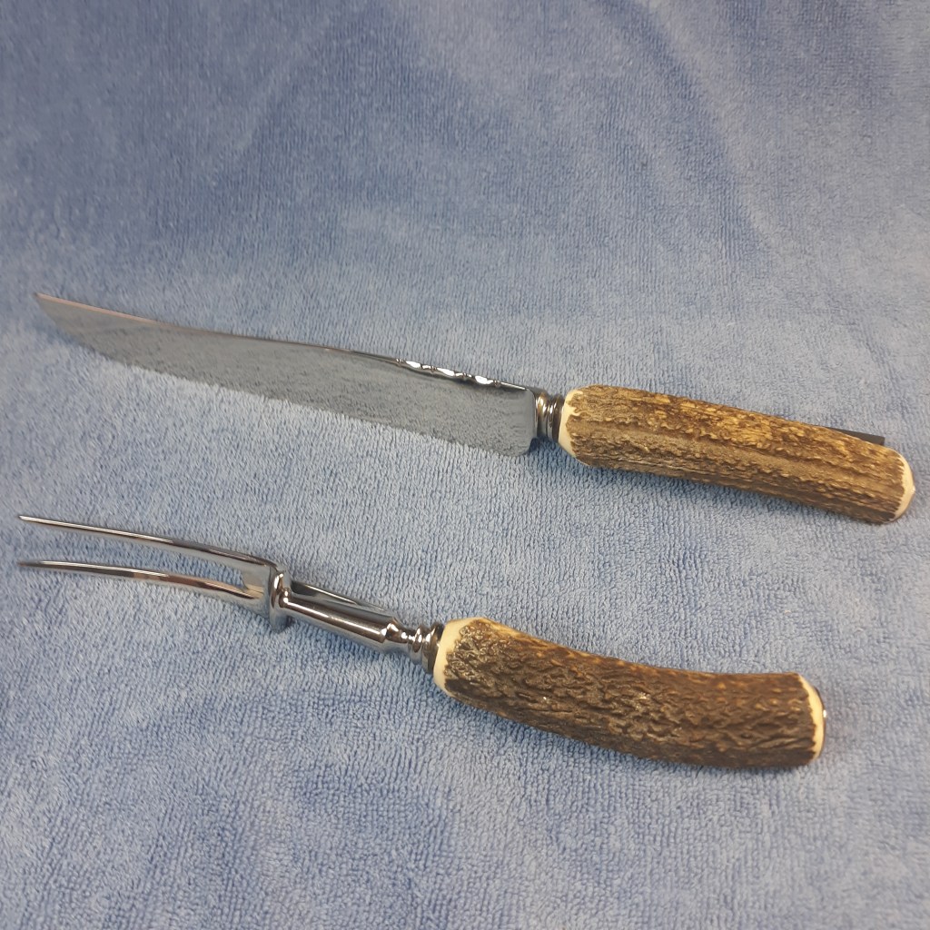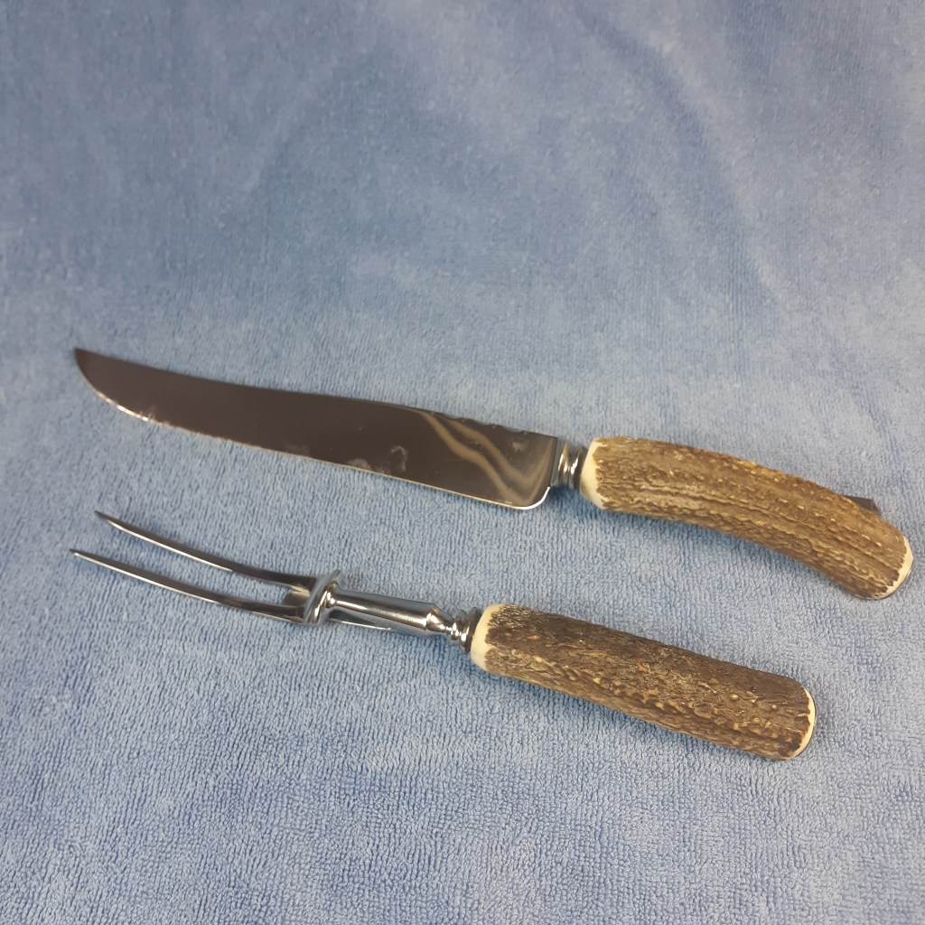 2 PIECE STAG ANTLER CARVING SET WITH CASE
